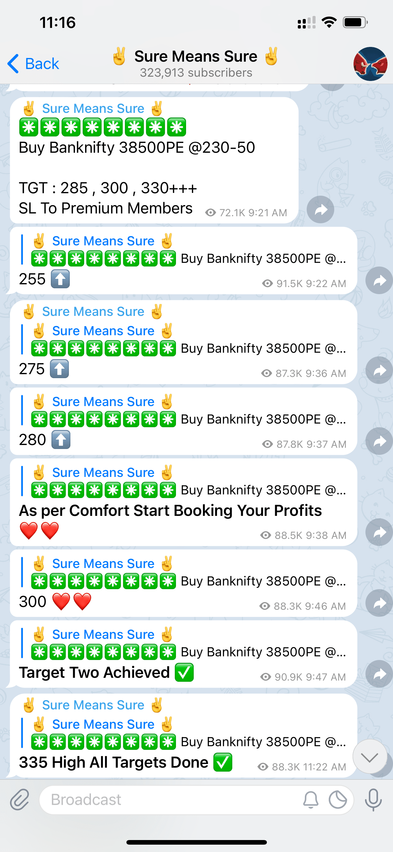 After this data backed study we generate powerful trading signals which are more than 90% accurate. We provide accurate entry and multi level targets per signal.